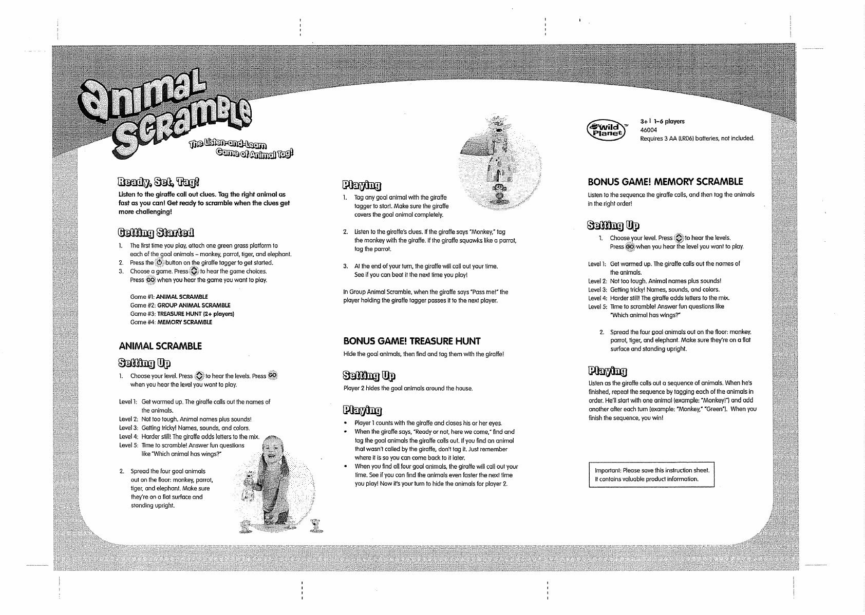Wild Planet Entertainment ANIMALSCRAMBLE Inductive Toy User Manual