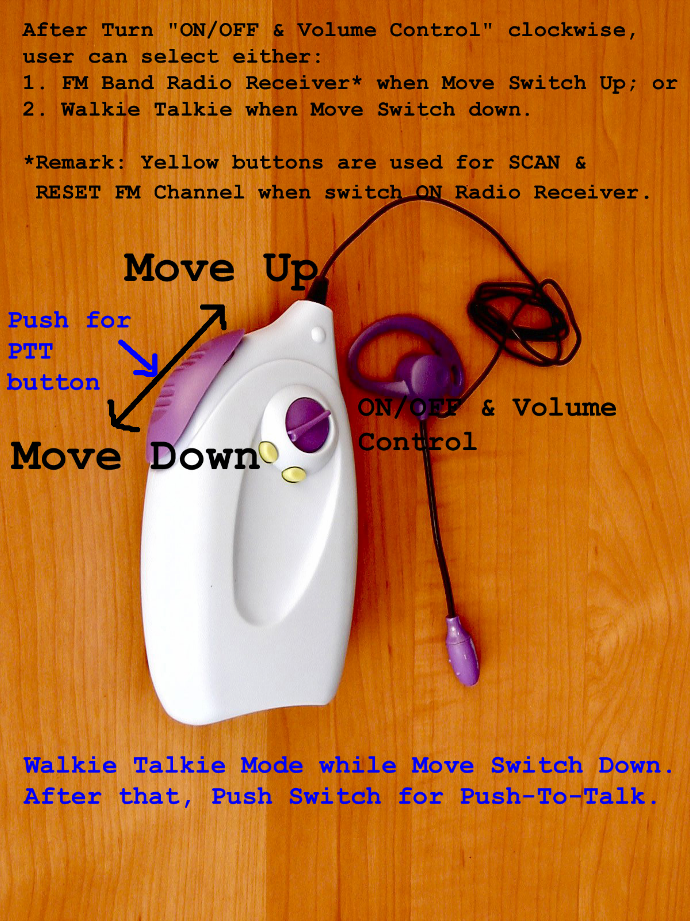1. Turn the hip talkie on using the purple knob (figure 3).