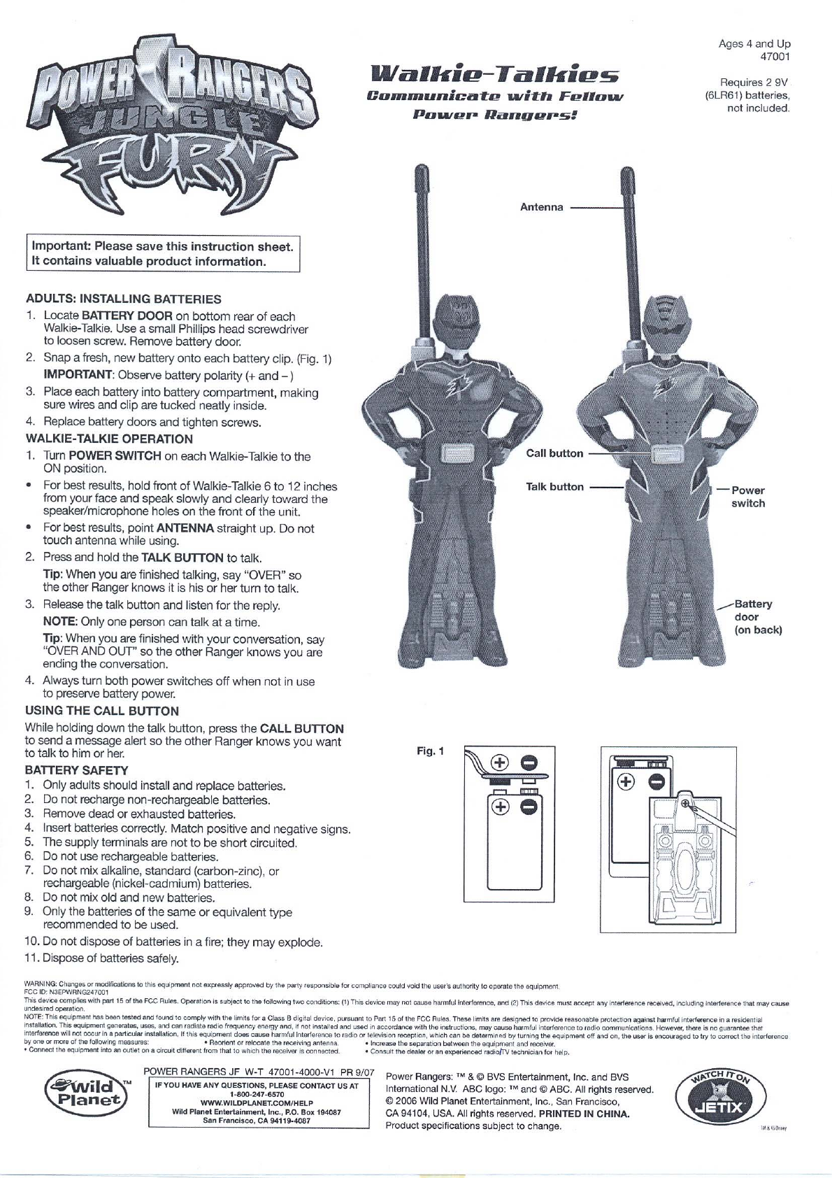 Wild Planet Entertainment PWRNG247001 Toy Walkie Talkie User Manual Print manual jpg 1 page