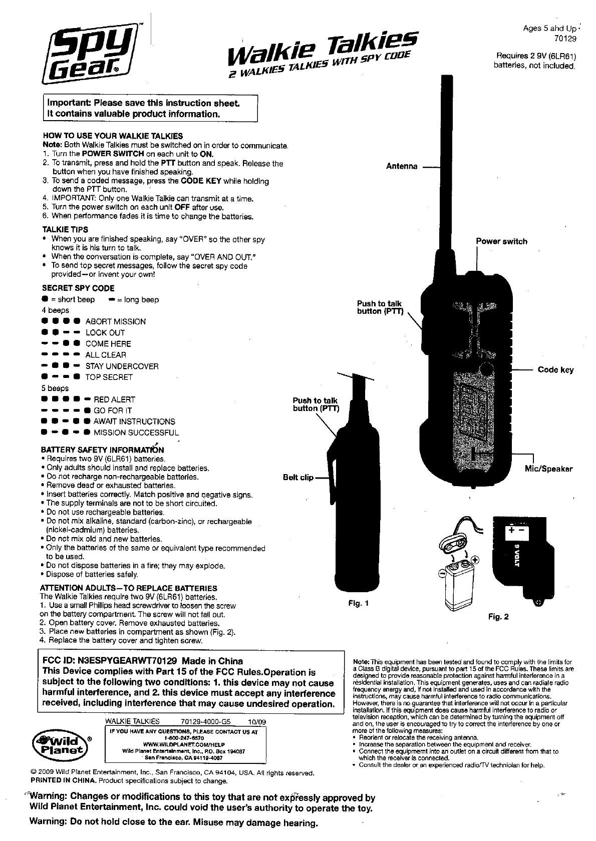 Wild Planet Entertainment, Inc. Walkie Talkies Manual