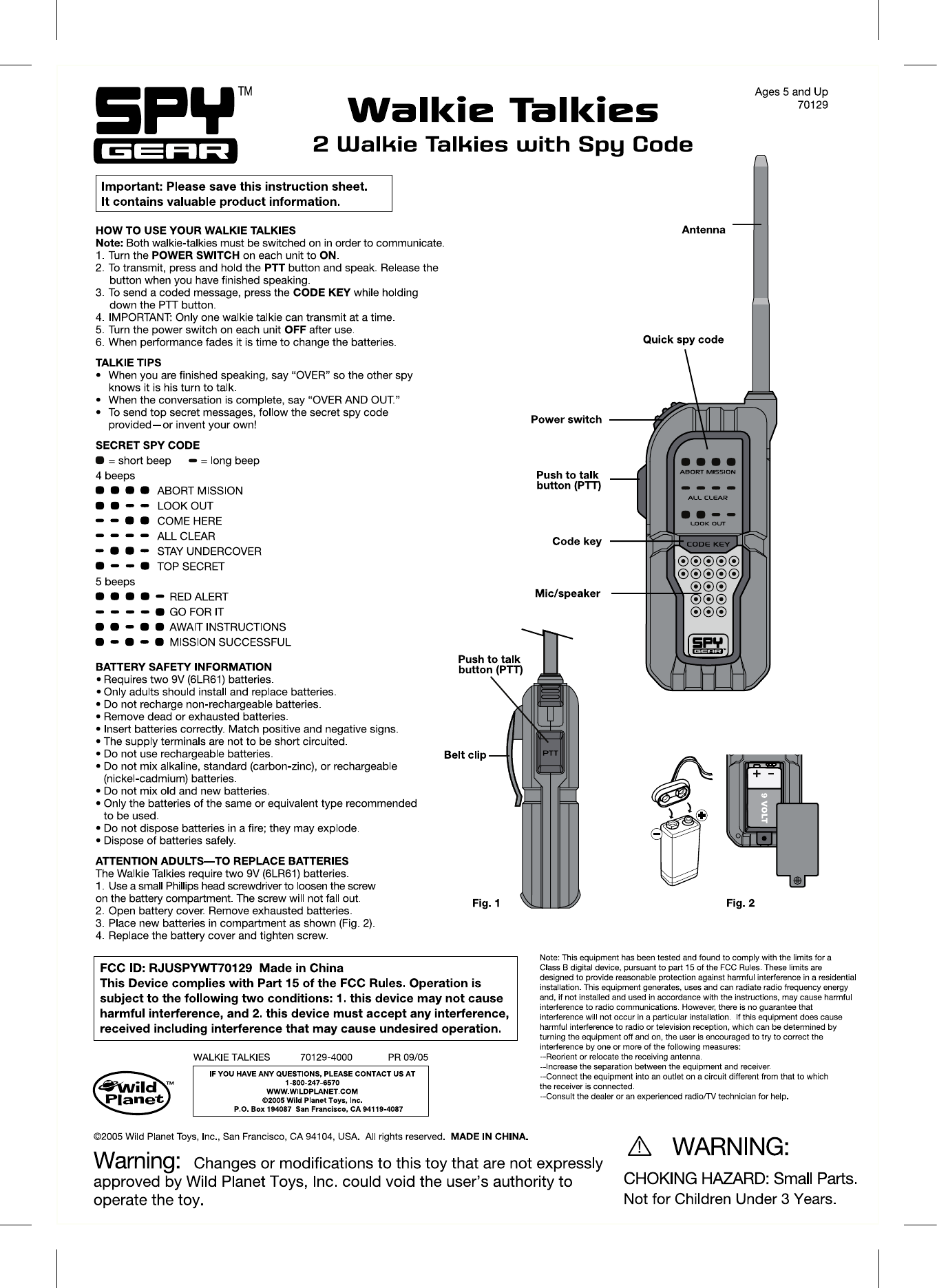 Wild Planet Entertainment SPYWT70129 Walkie Talkie User Manual 70129SG WalkieTalkieIS eps