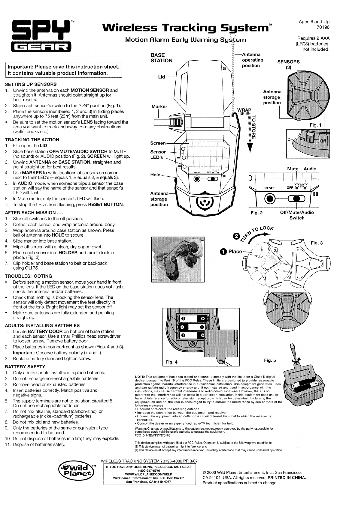 Wild Planet Entertainment WTSYS70196 RF Toy User Manual