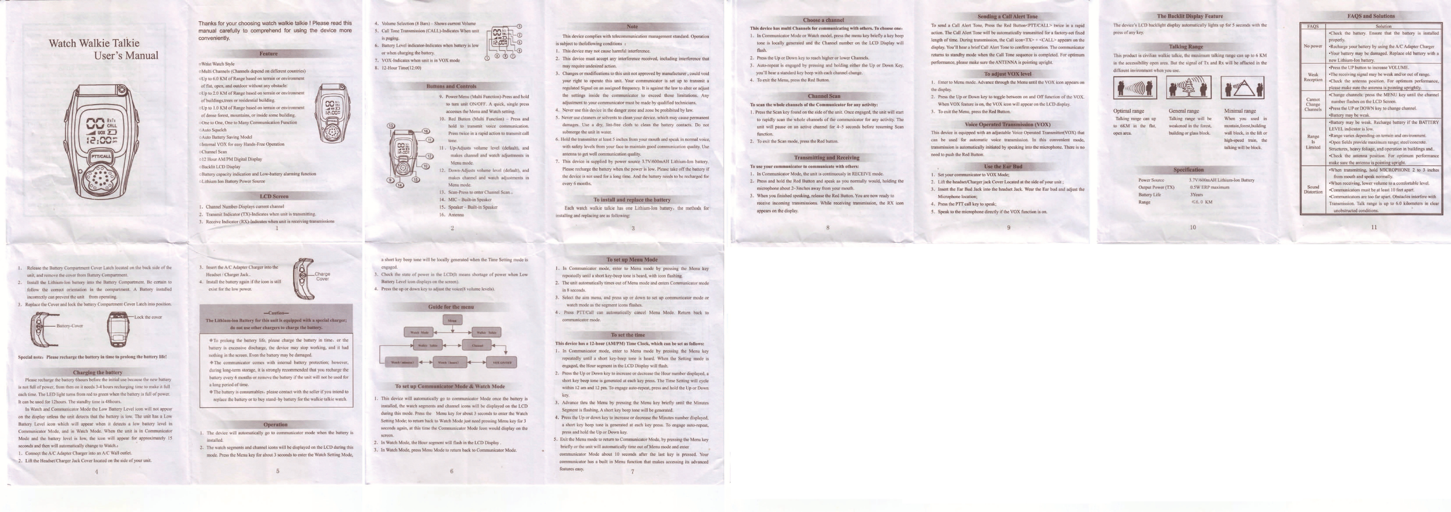 Wild Planet Entertainment WWWT70489 Wrist Watch Walkie Talkie User Manual
