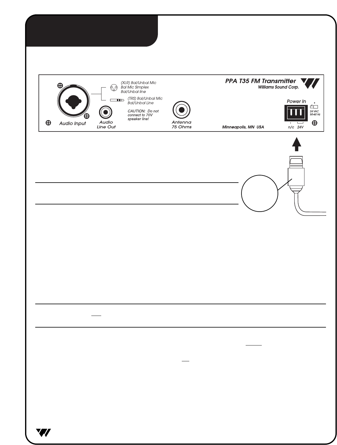 Williams Sound T35 Auditory Assistance Transmitter User Manual MAN110 PPAT35