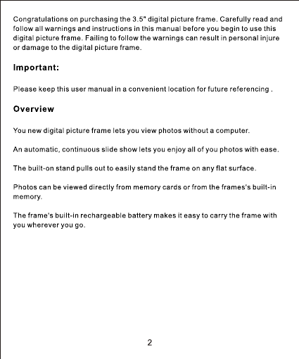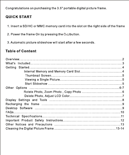 Win Accord 6210-35 Digital Photo Frame User Manual
