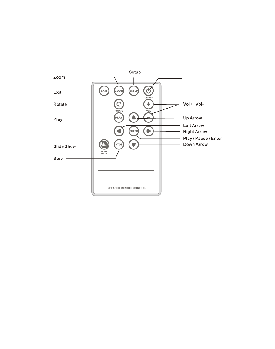 You can control all of the Digital PictureFrame functions with the buttons on the top of the frame or