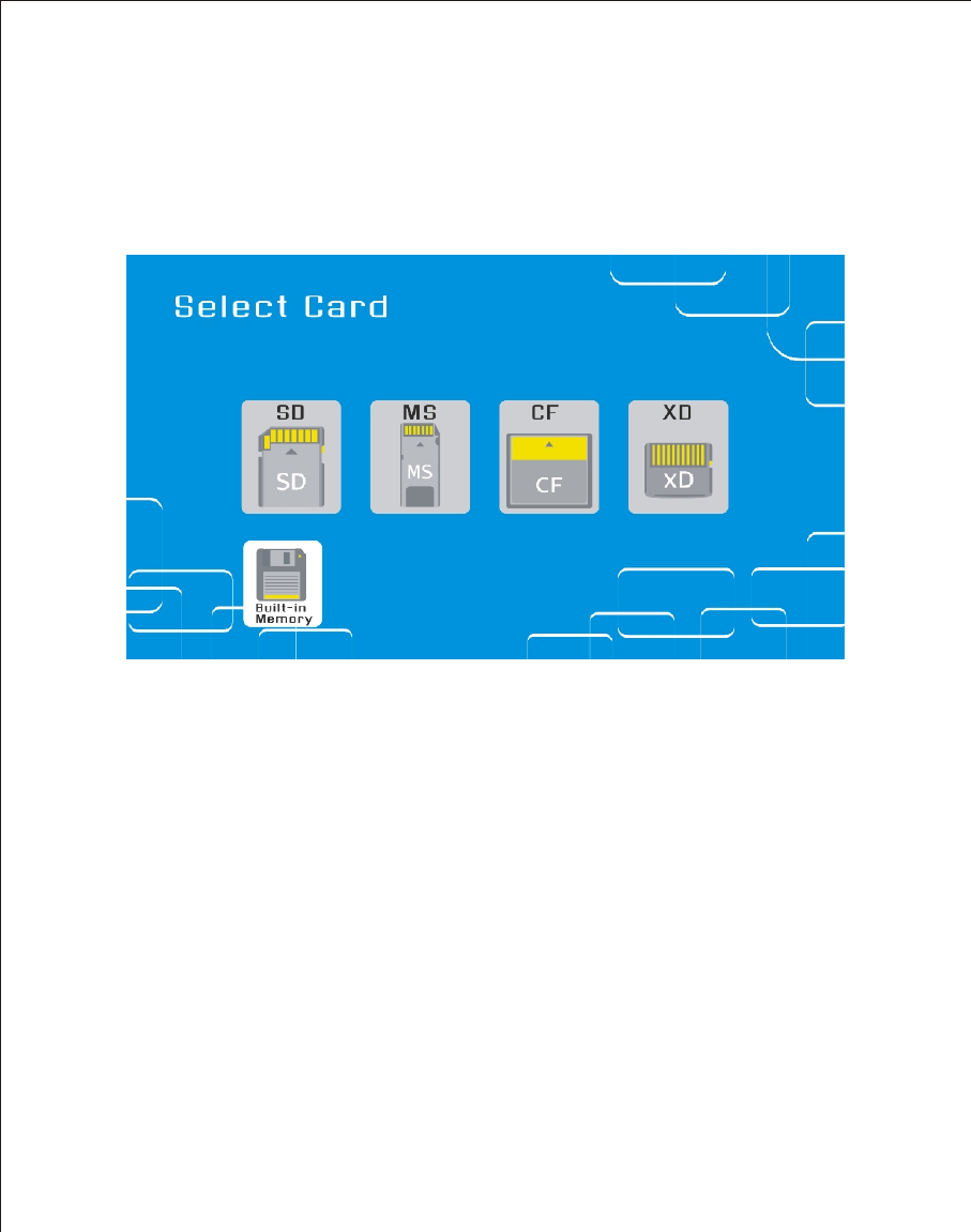 Use the Card Selection menu to choose between memory cards and the build-in memory.