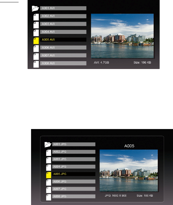 Press ENTER on video/music files to play the video/music. Press ENTER