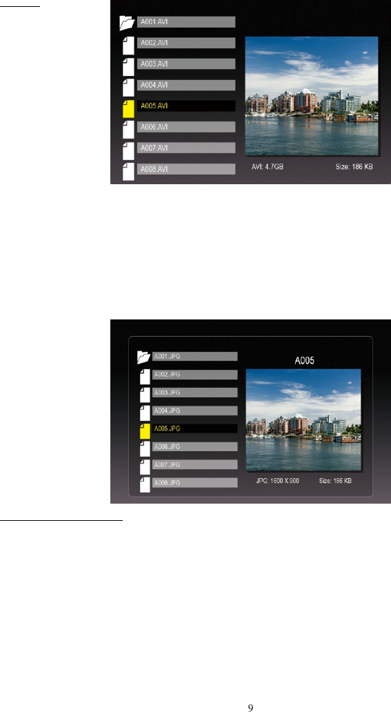 Press ENTER on video/music files to play the video/music. Press ENTER on image