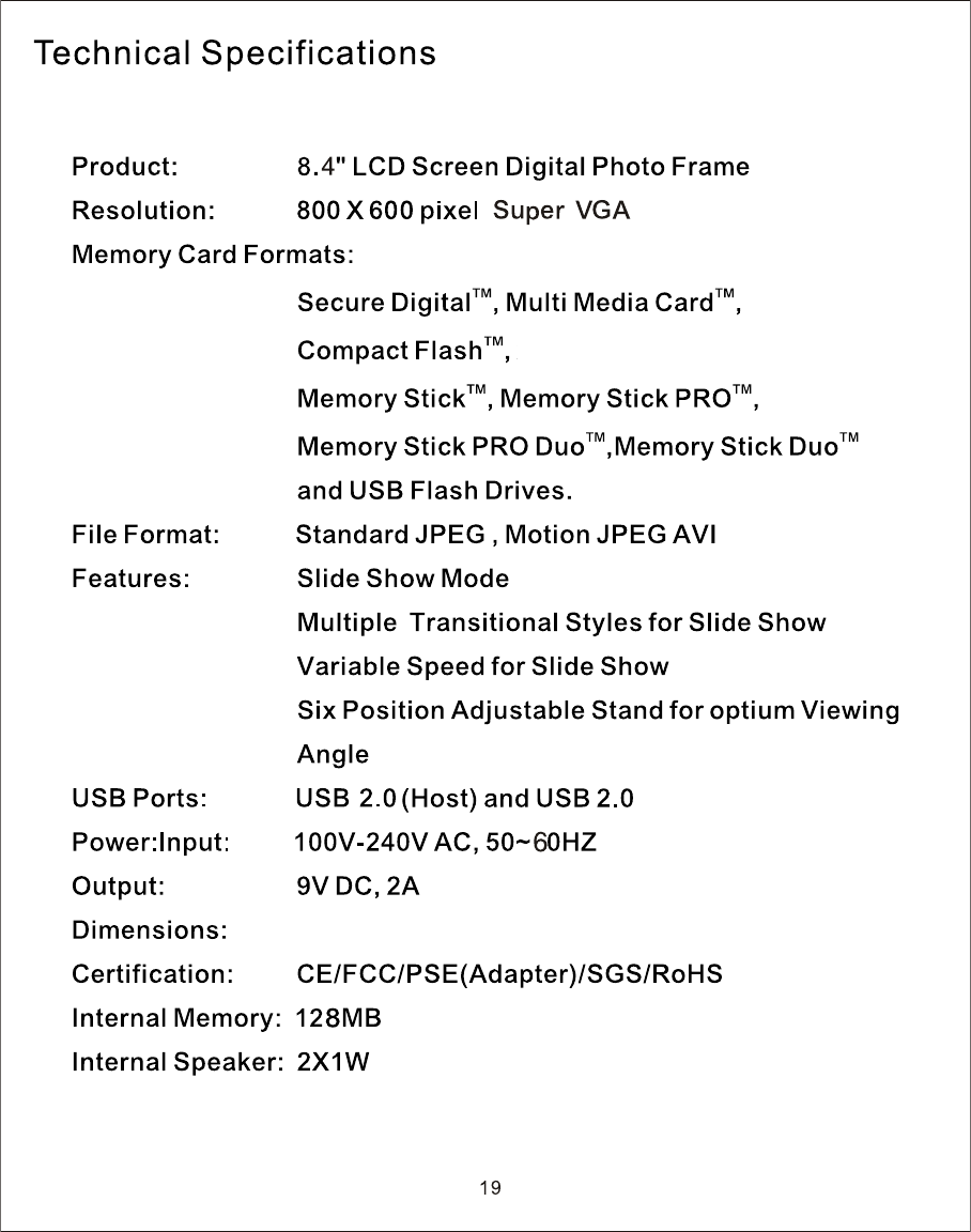 Win Accord 84INCHDPF Digital Photo Frame User Manual