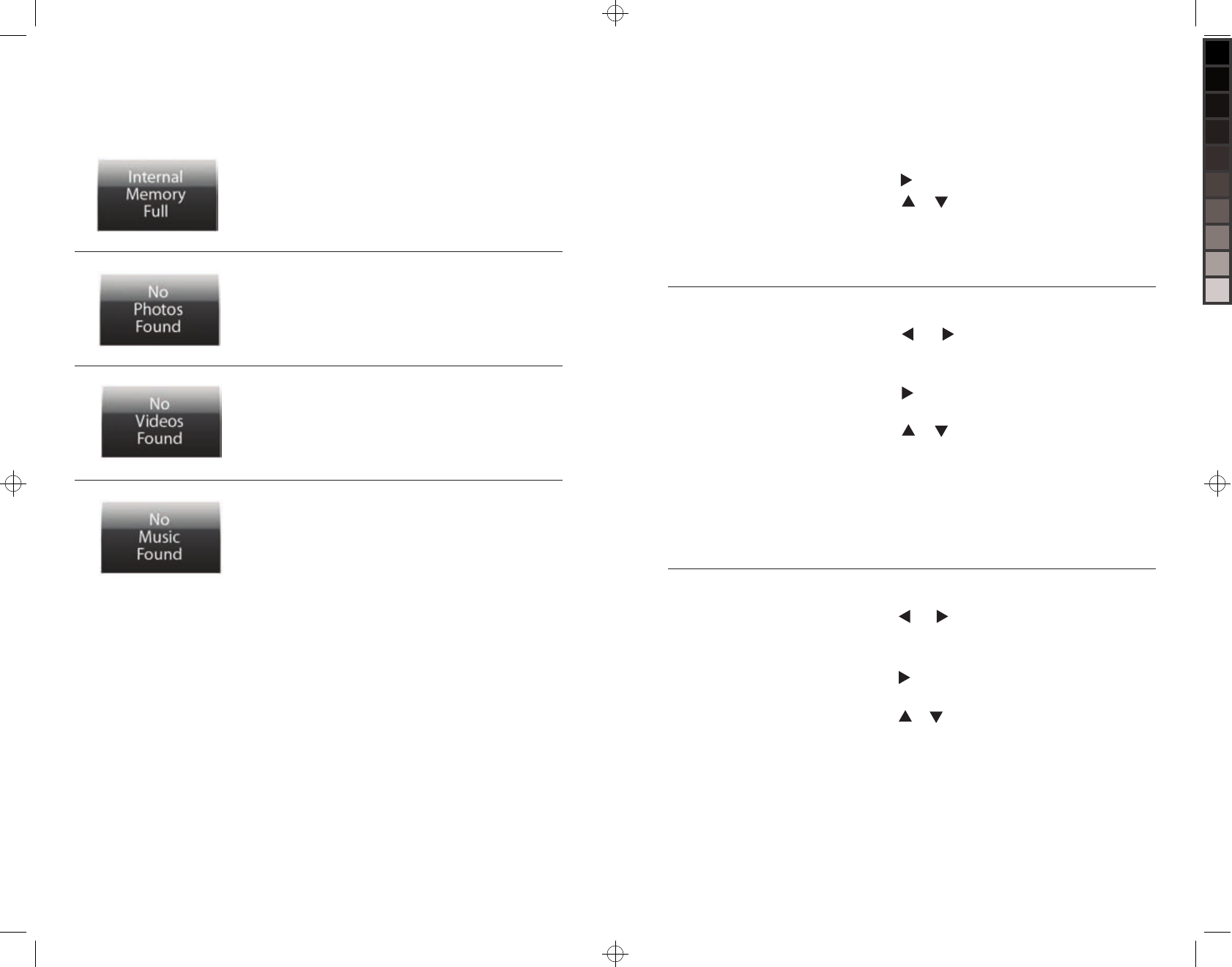 Press , , or to scroll through videos.