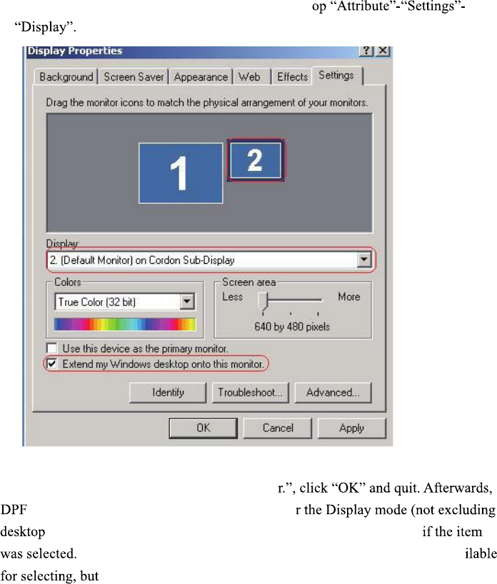 NOTE : Selected the “(Default Monitor) on Cordon Sub-Display”, then click the
