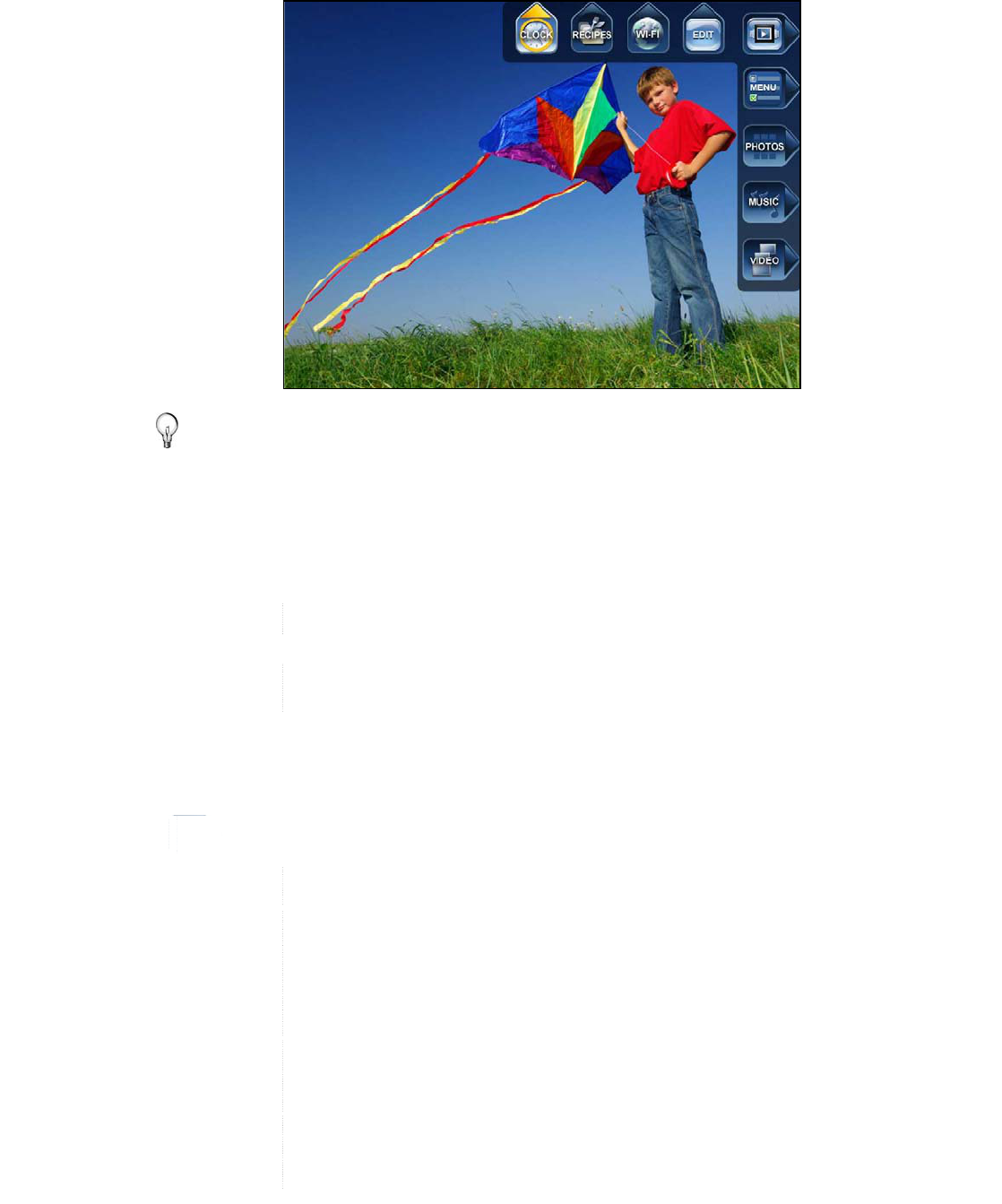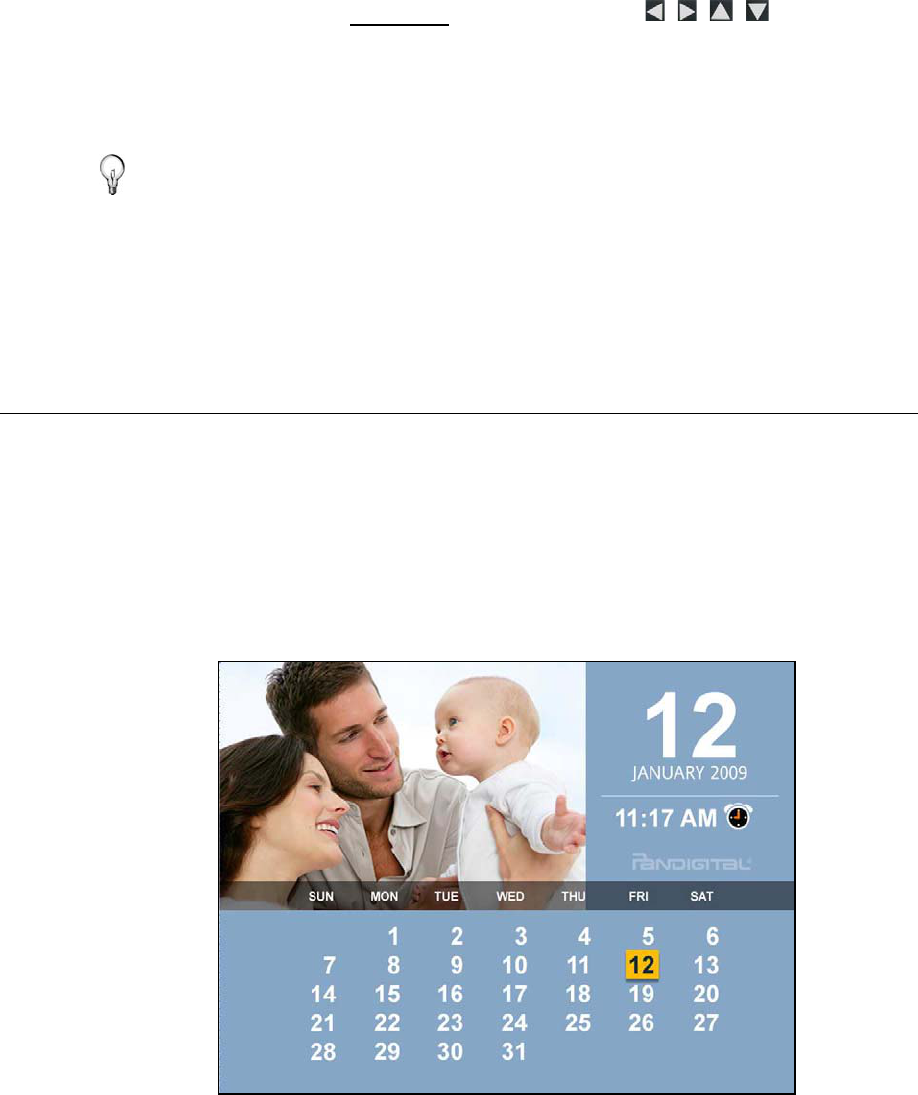 Use the DPF as a calendar/clock with personal photo slideshow, play