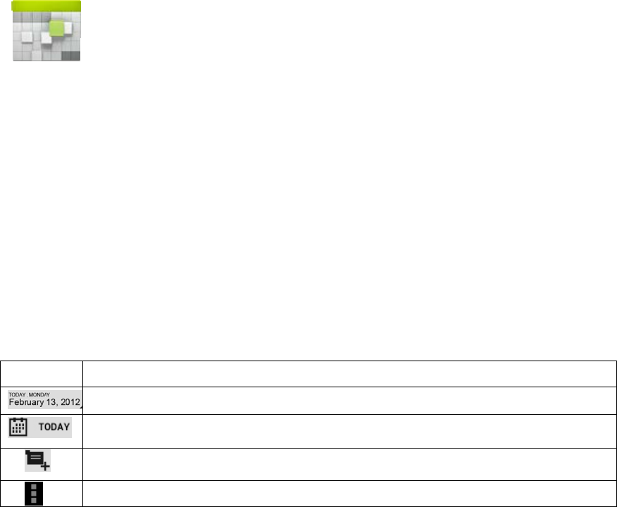 ● Displays Alarm, AppInstaller, Browser, Calculator, Calendar, Camera, Clock, Email,