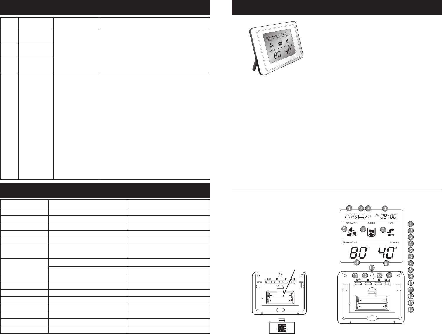 the dehumidifier: temperature, humidity, etc.