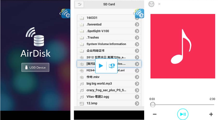 AirDisk allows you to play the content on USB disk, just plug the USB