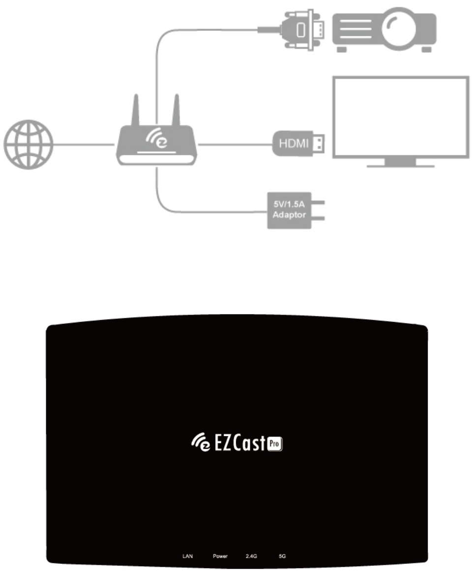 use the 5V-1.5A DC adapter to power up EZCast Pro Box, and plug