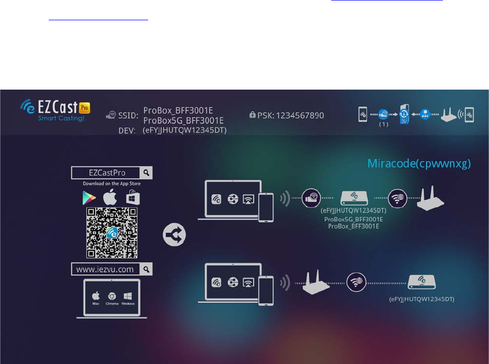 n Or Use the QR scanner app to scan the QR code on EZCast Pro