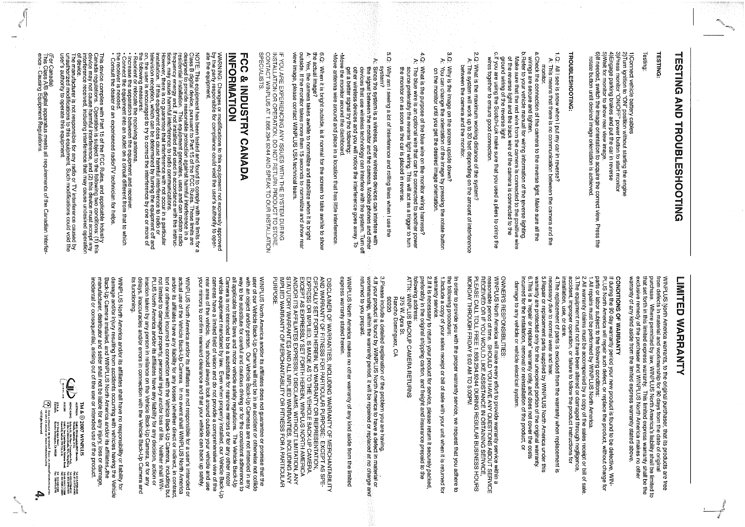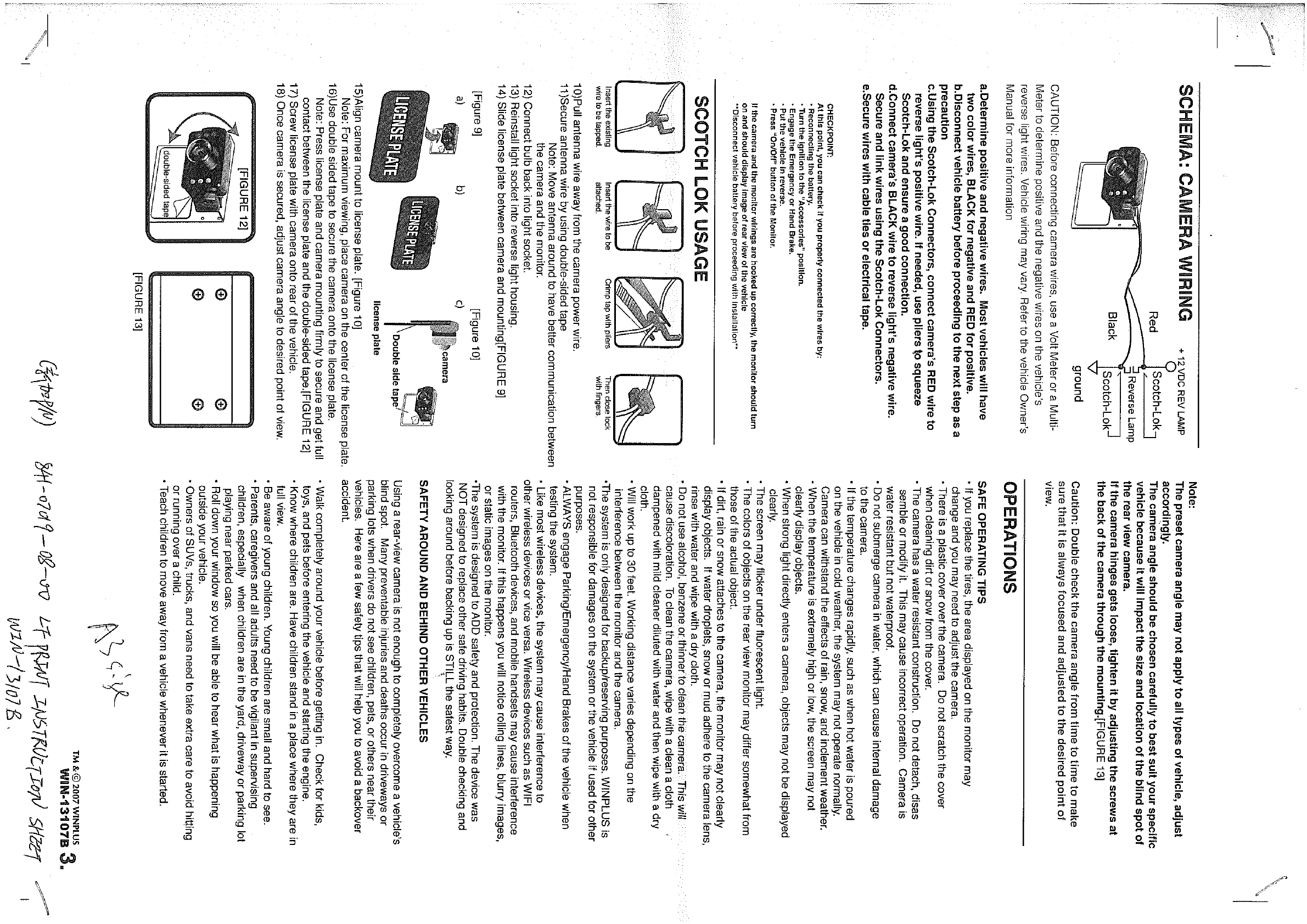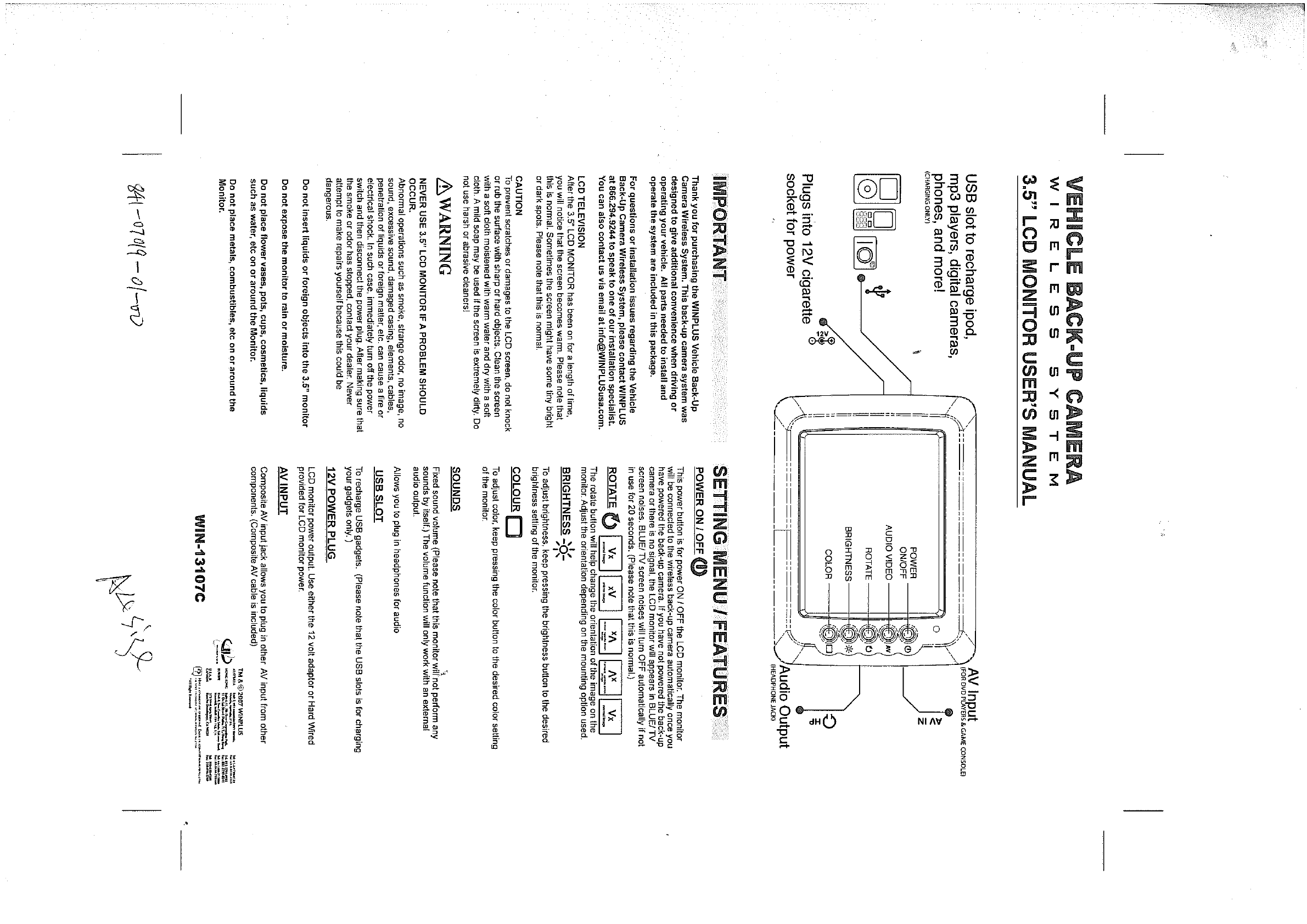 Winplus 13107A 3.5" BU Camera User Manual