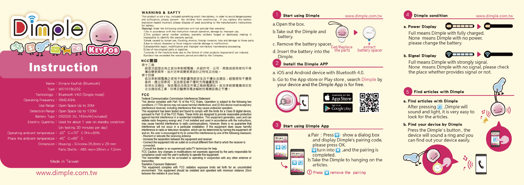 Winplus W0101BLE02 Dimple KeyFob User Manual User instructions