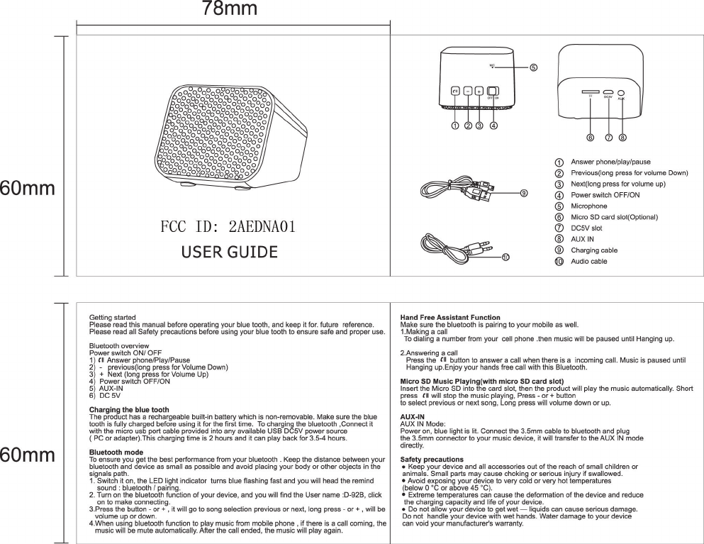 Winspeed A01 JUKX Portable Stereo Speaker - Bluetooth-black User Manual