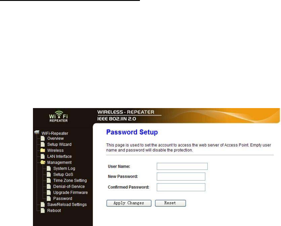 Please click ‘Management -> Password‘ menu on the web management
