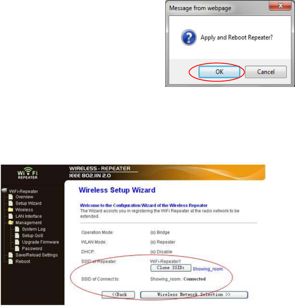 A11. Click ‘OK’ to confirm. The Repeater