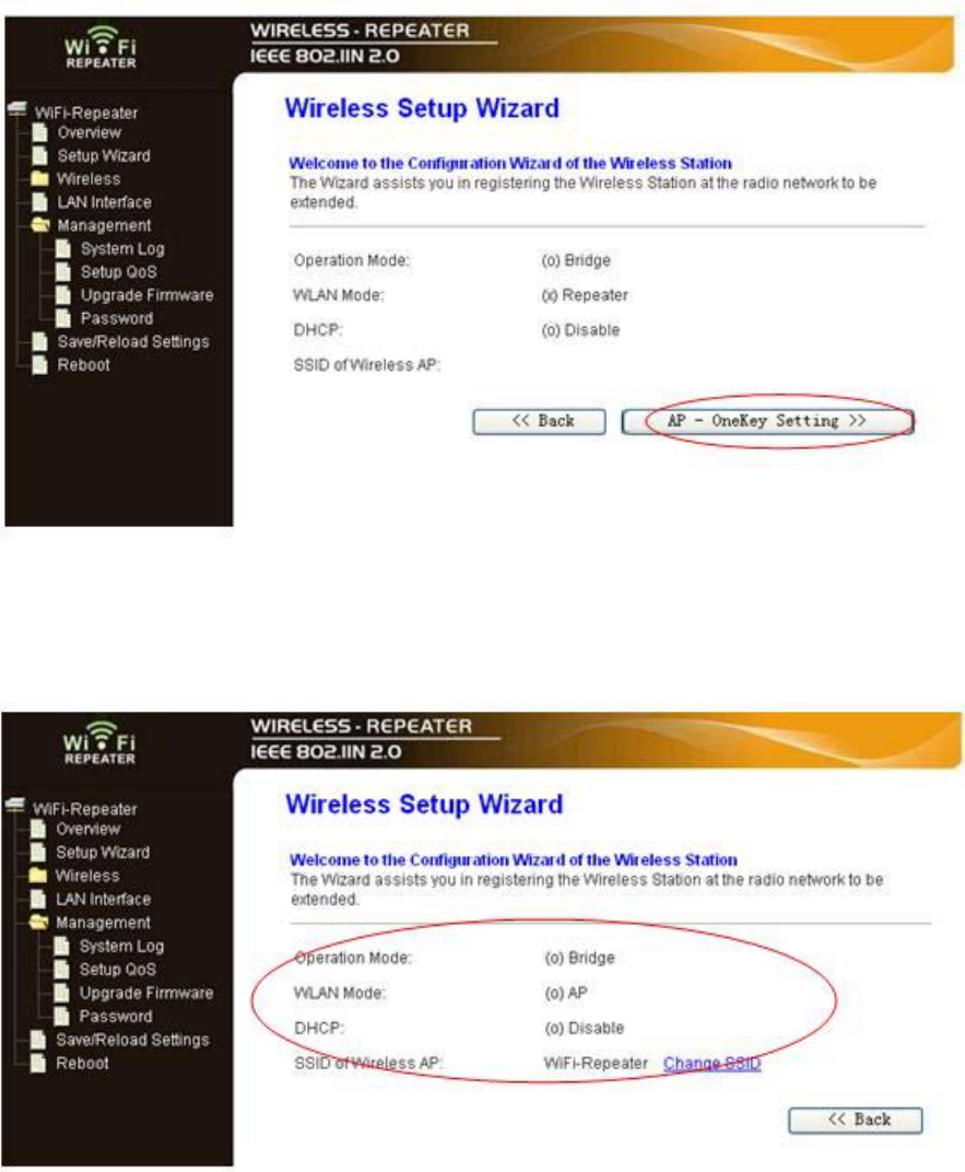 A7. Click on ‘Repeater – OneKey Setting’ button