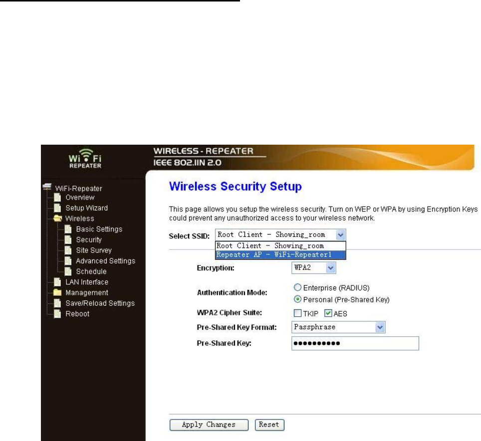 Please click “Wireless-> Security” located at the web management