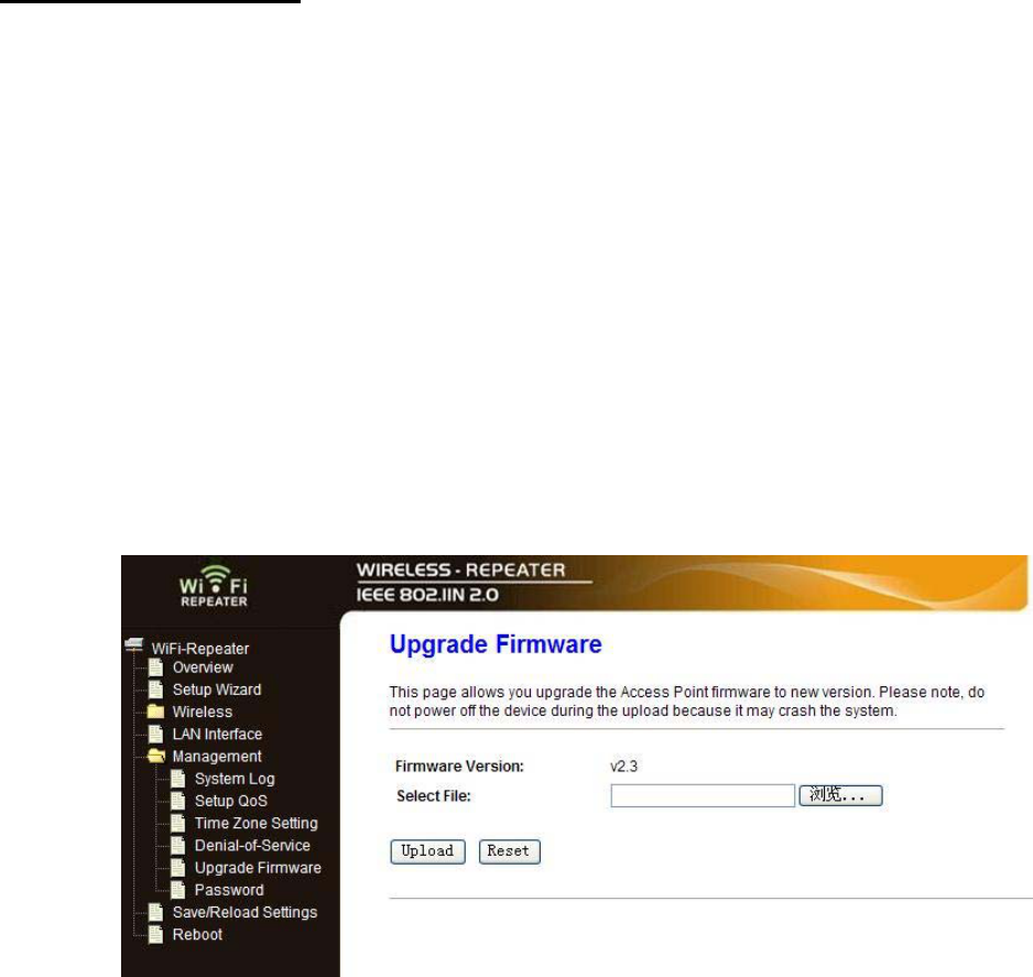 Please click ‘Management-> Upgrade Firmware’ located at the web
