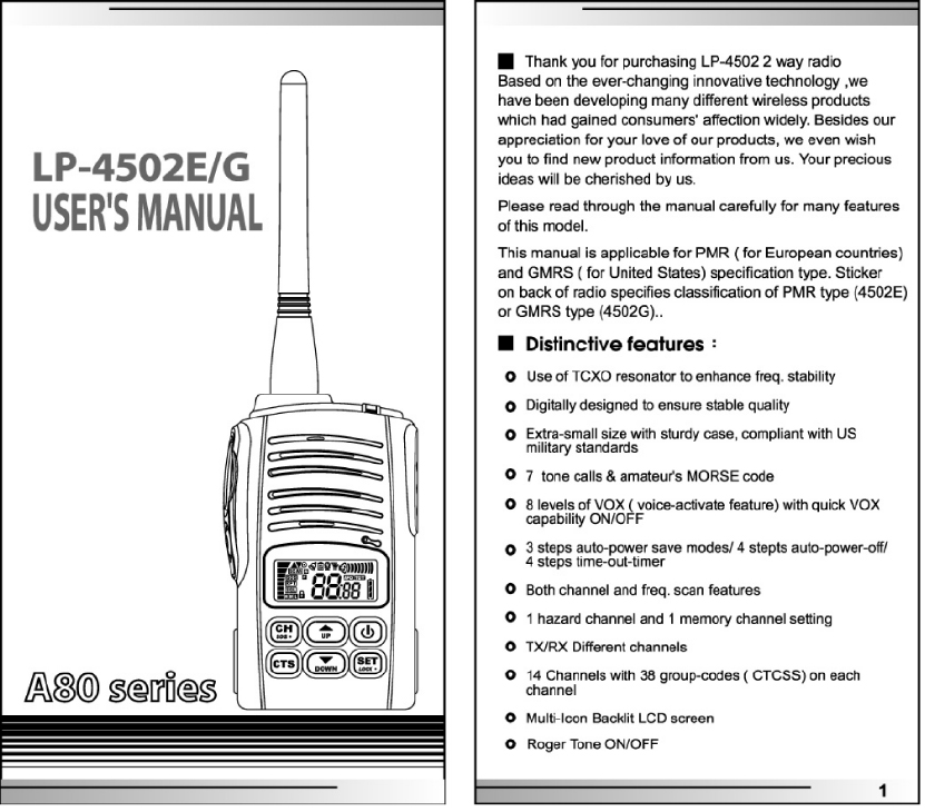Wintecronics LP-4502 FRS/GMRS UHF Transceiver User Manual 1
