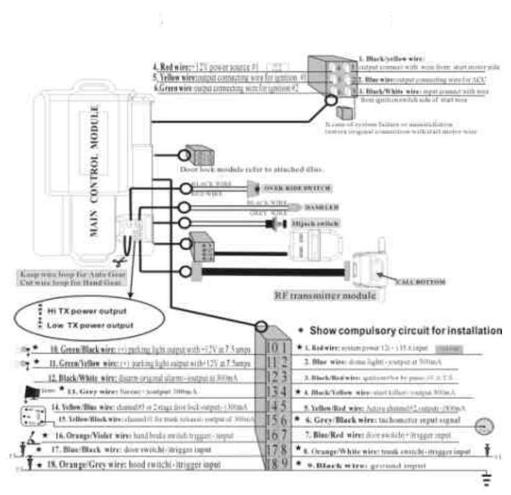 “ ignition” and “start” . Connect this wire with the green wire.