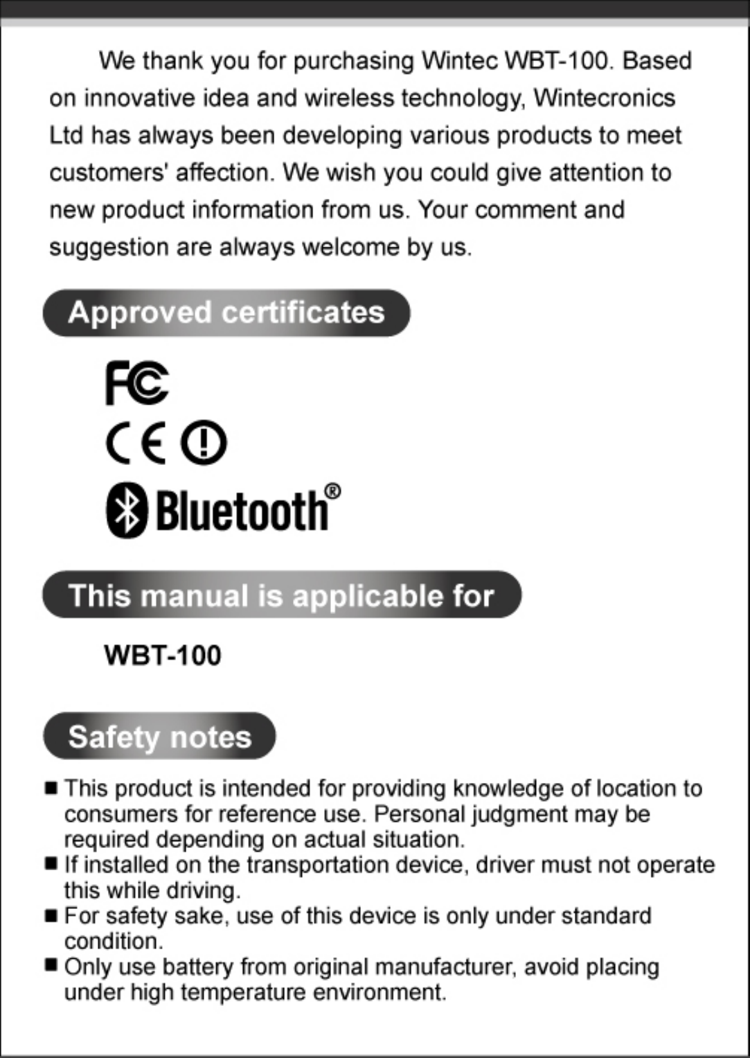 WBT100 User Manual