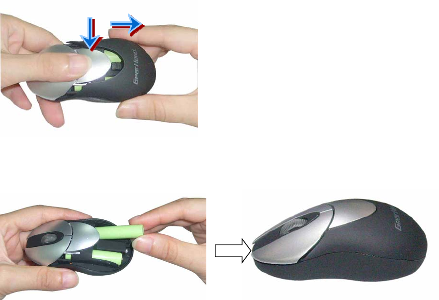 button in the middle of the mouse and slide the Battery Compartment Cover open.