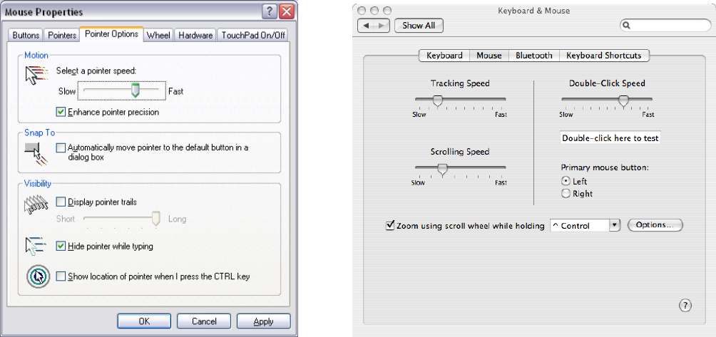 screen, and then select the “Pointer Options”. After you have made your changes; select “Apply”,