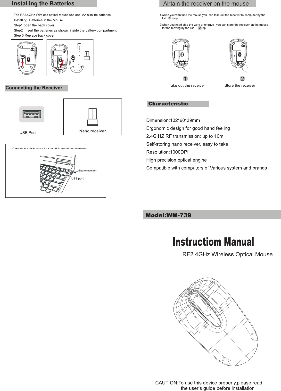 Wintop Electronics WM-739 WIRELESS CHARGING MOUSE User Manual WM 739