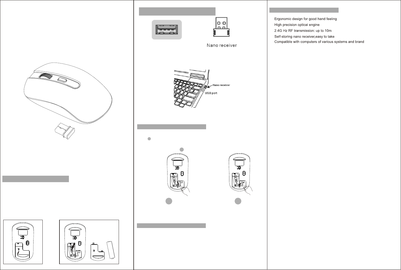1:when you want use the mouse,you can take out the receiver to computer by the