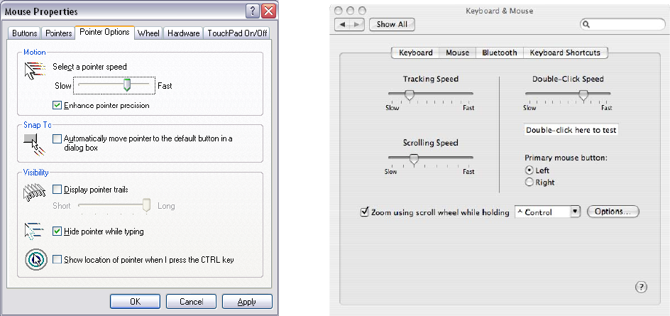 screen, and then select the “Pointer Options”. After you have made your changes; select “Apply”,