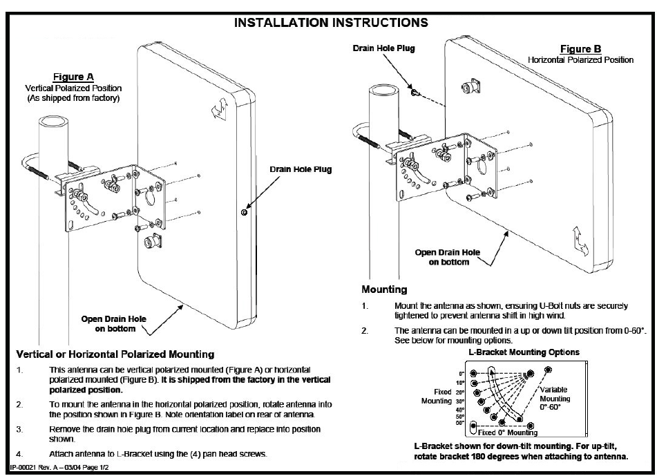 This manual covers the installation of optional directional 18dBi patch antennas and