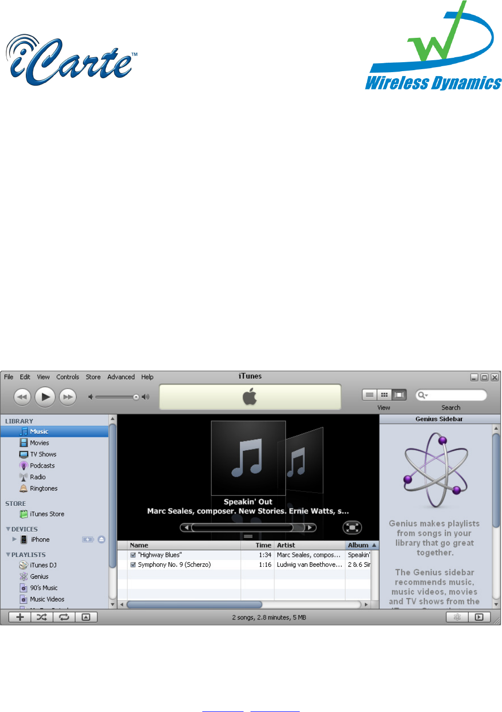 Wireless Dynamics Inc. hereby declares that iCarte is in compliance with the essential requirements of: