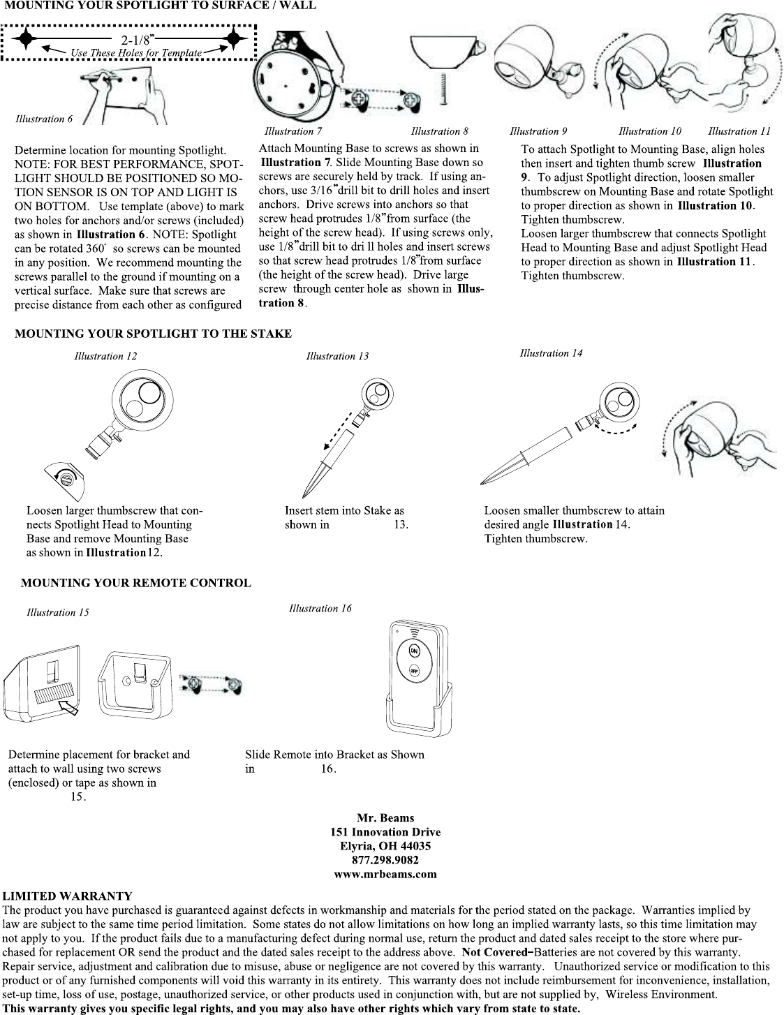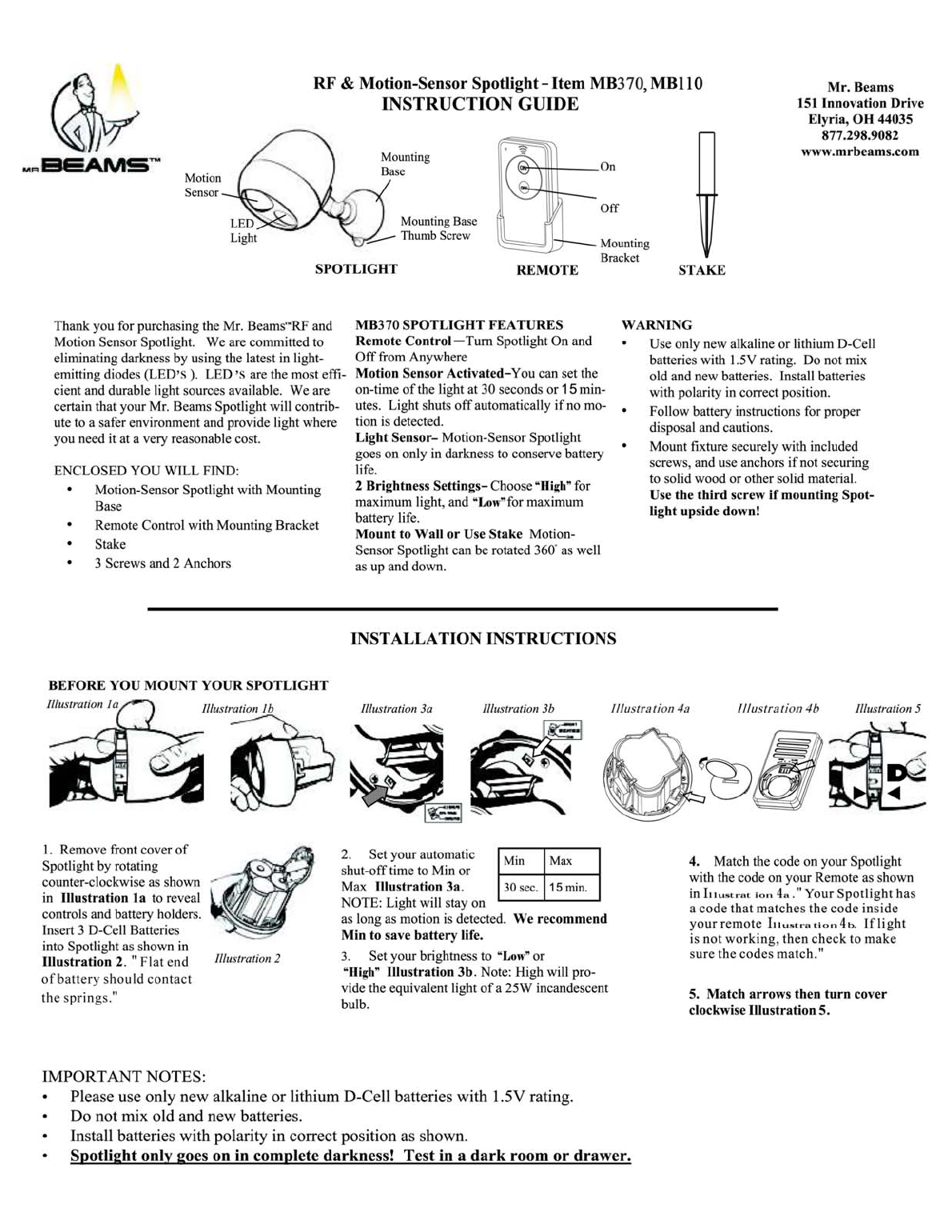 Wireless Environment LLC MB370 RF Remote Switch RF Spotlight Manual 1