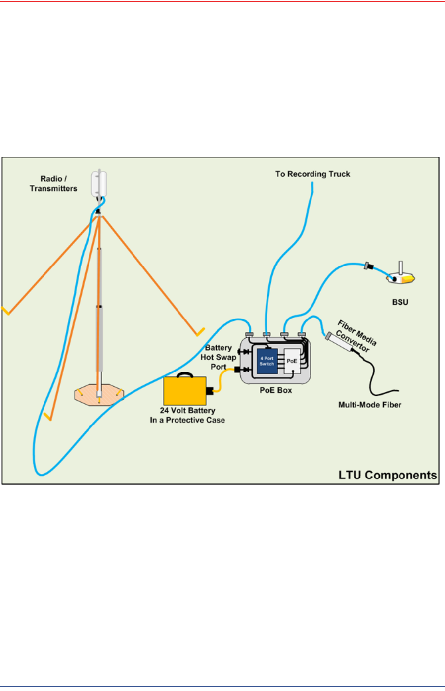 Power is supplied to the LTU components by way of a 24 Ah DC battery or power