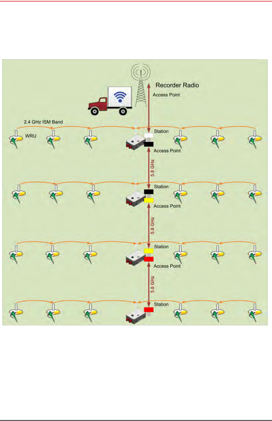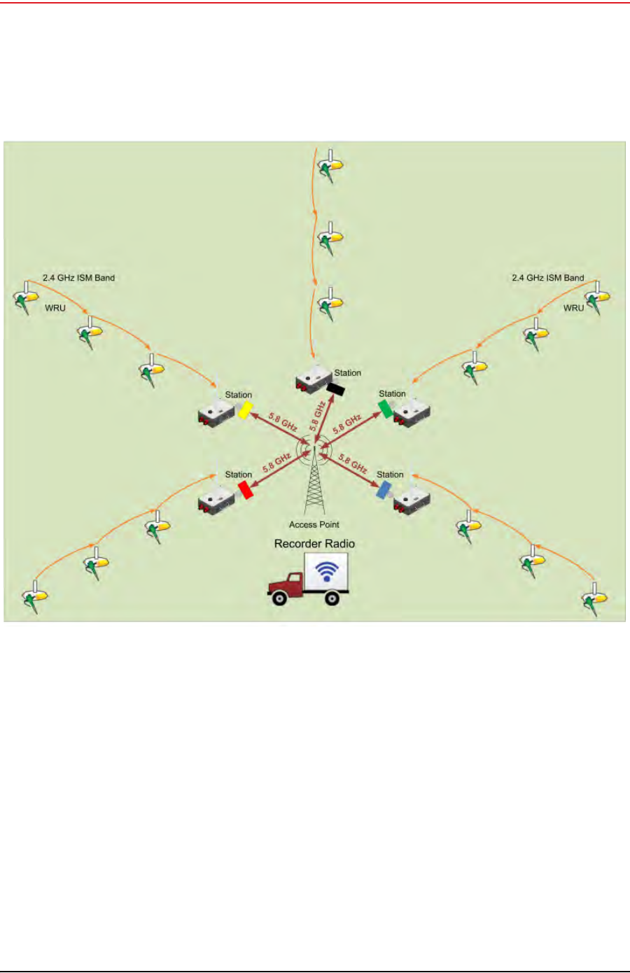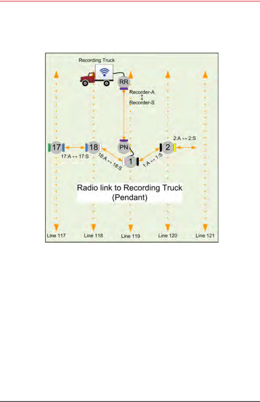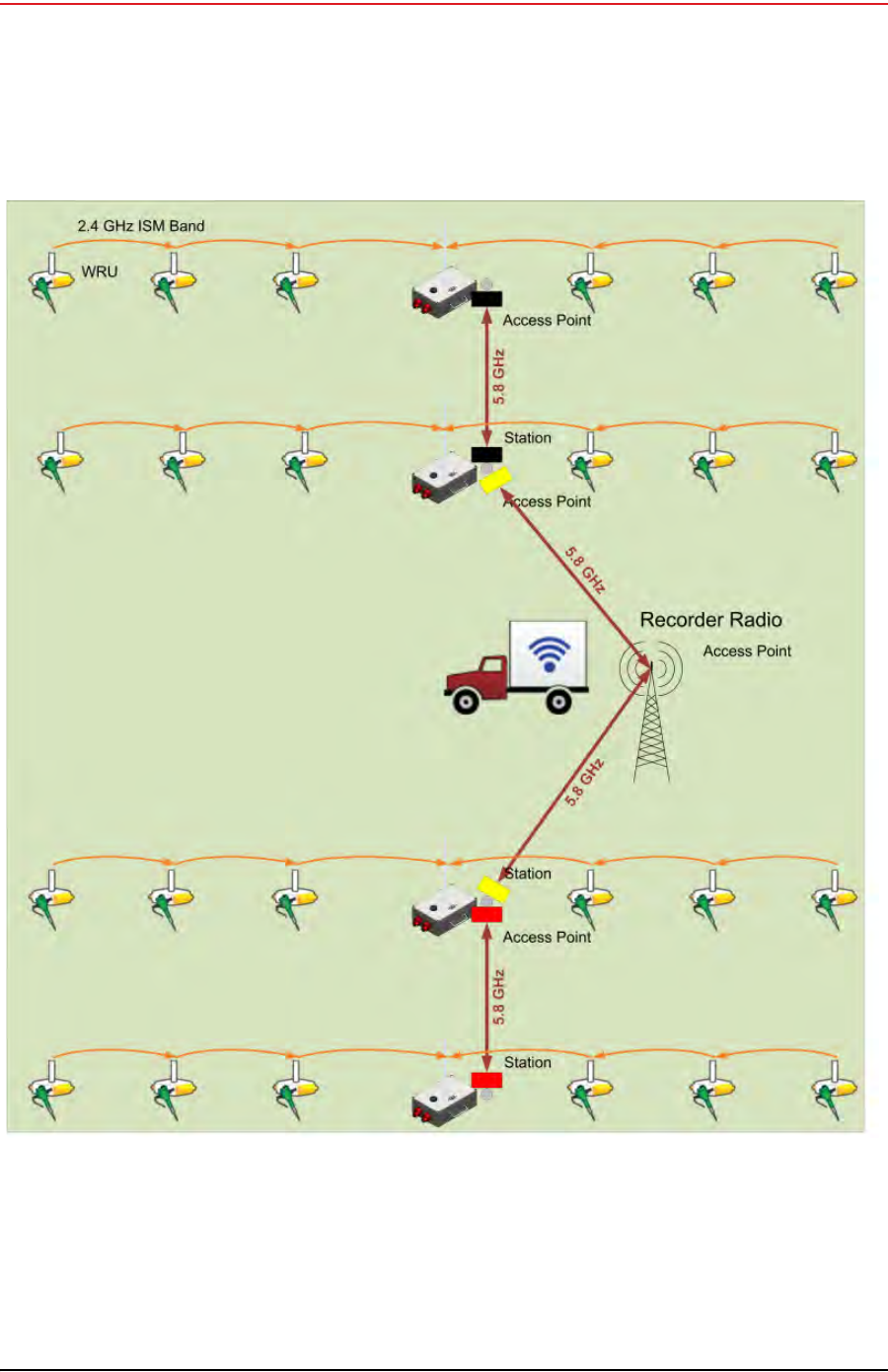 The recording truck radios are configured Access Points (A) and the line station radios
