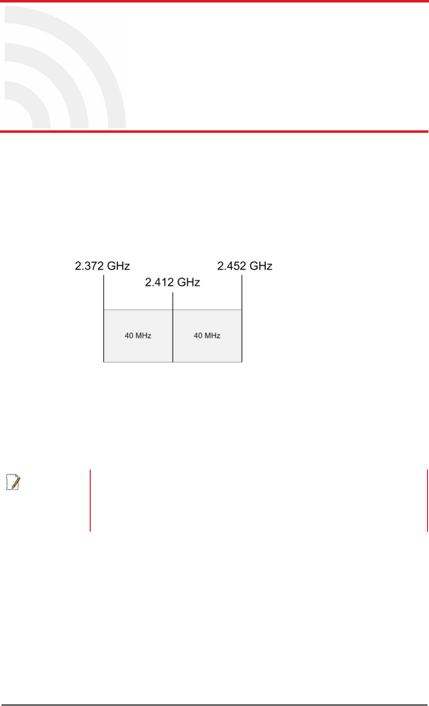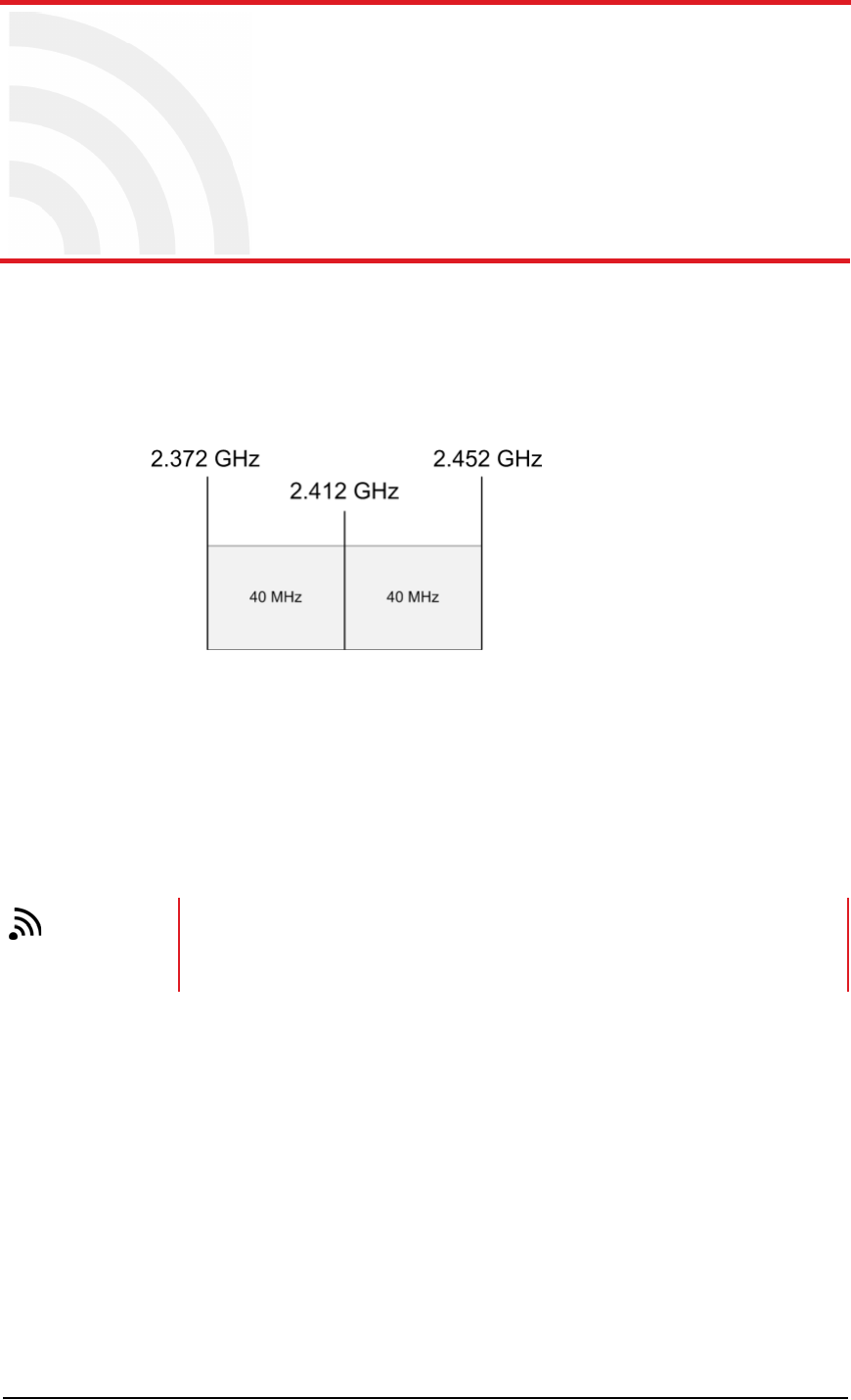 is 2.412 GHz, and the frequency band is 80 MHz wide, there are 40 MHz on either side