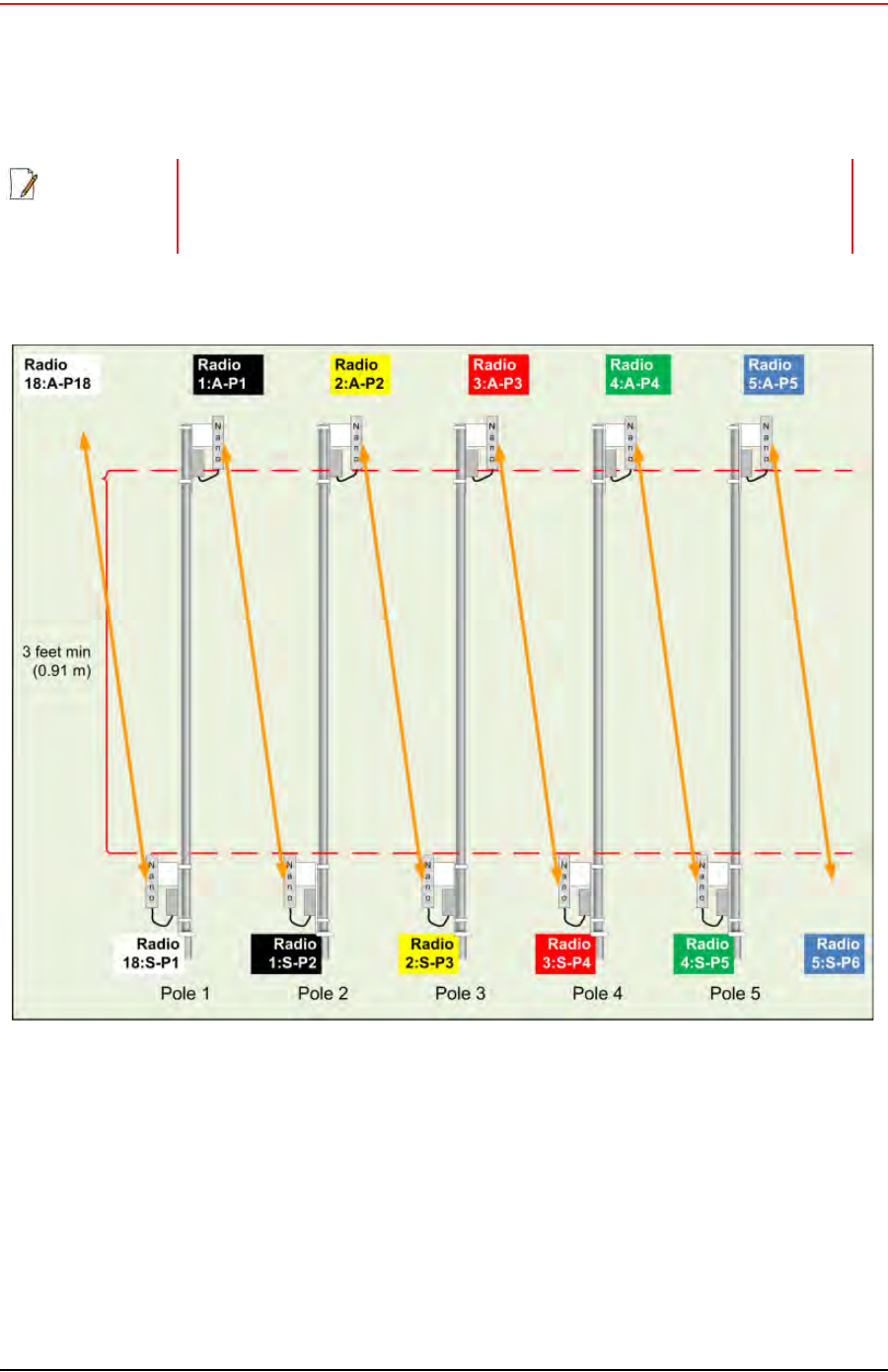 The PN radio should be at least 3 ft (0.91 m) from the line pole
