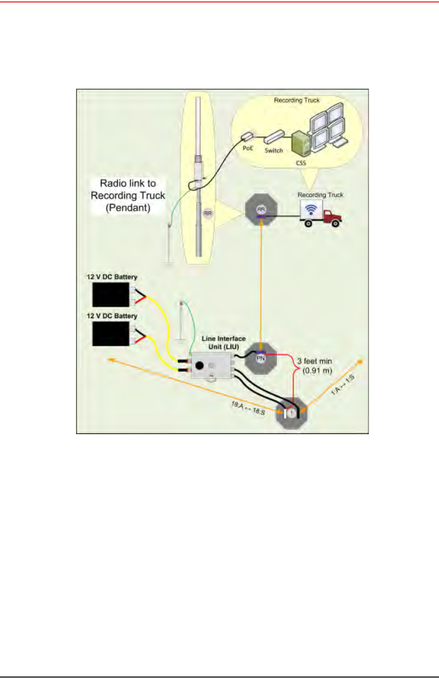 mast located at the recording truck can communicate using an LIU or a PoE