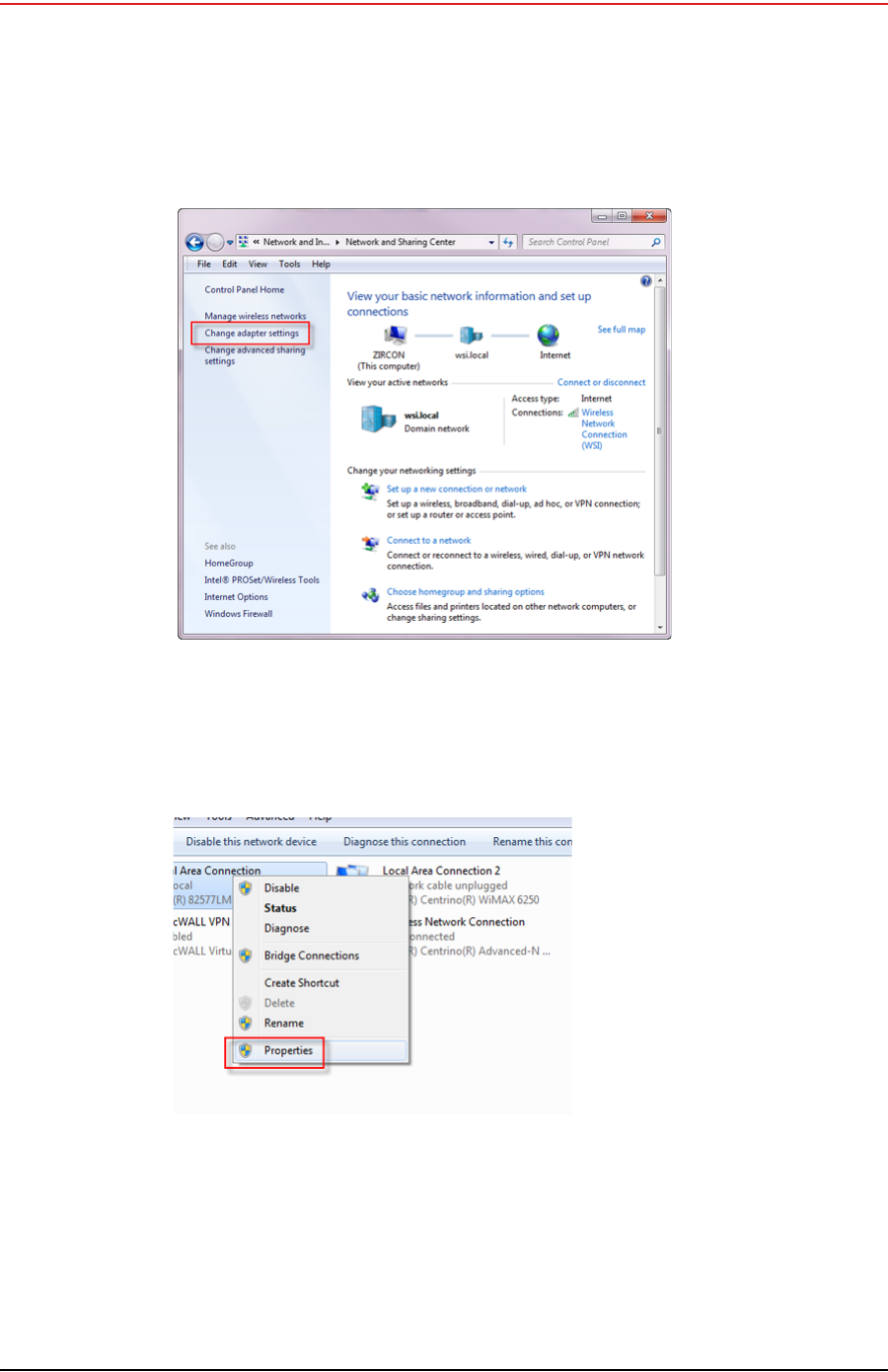 6Right-click Local Area Connection and select Properties. The Properties