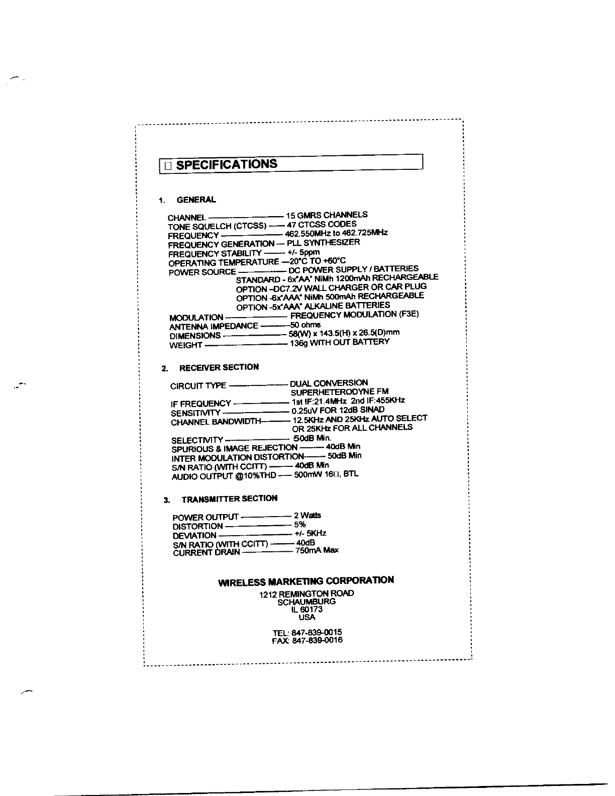 Wireless Marketing Corporation GMRS transceiver 16738
