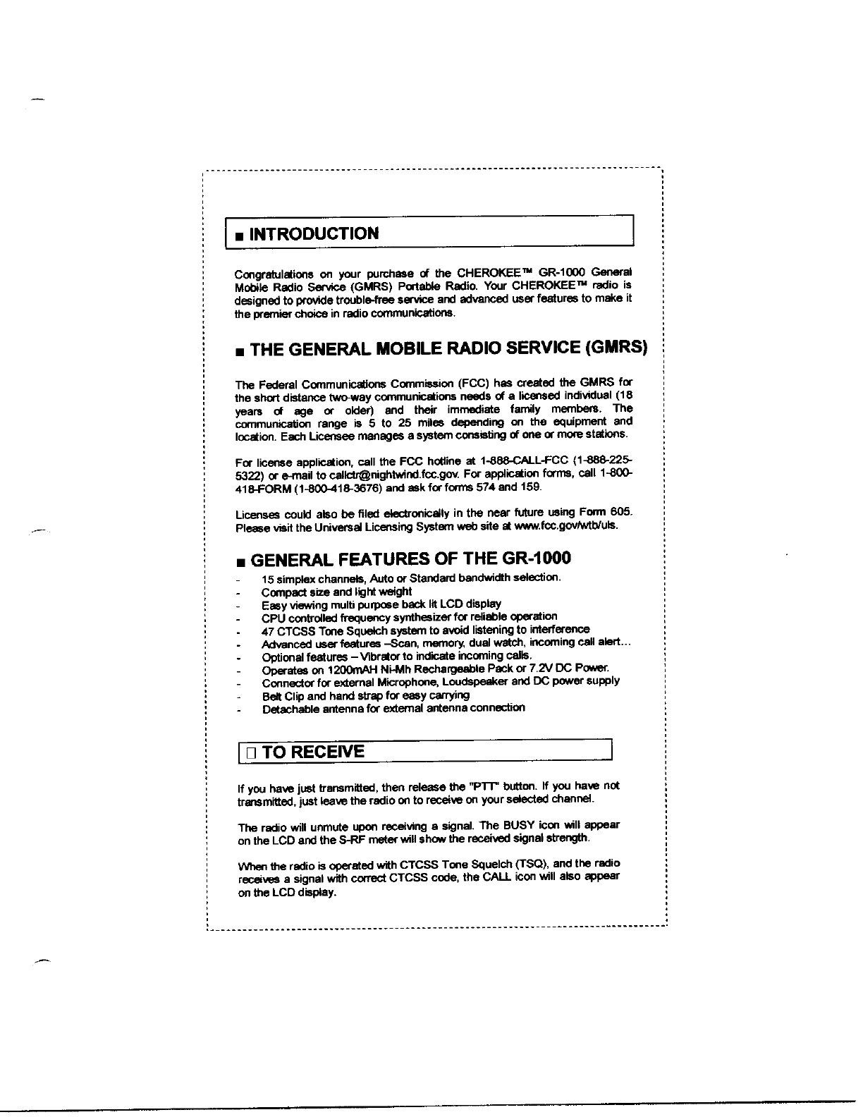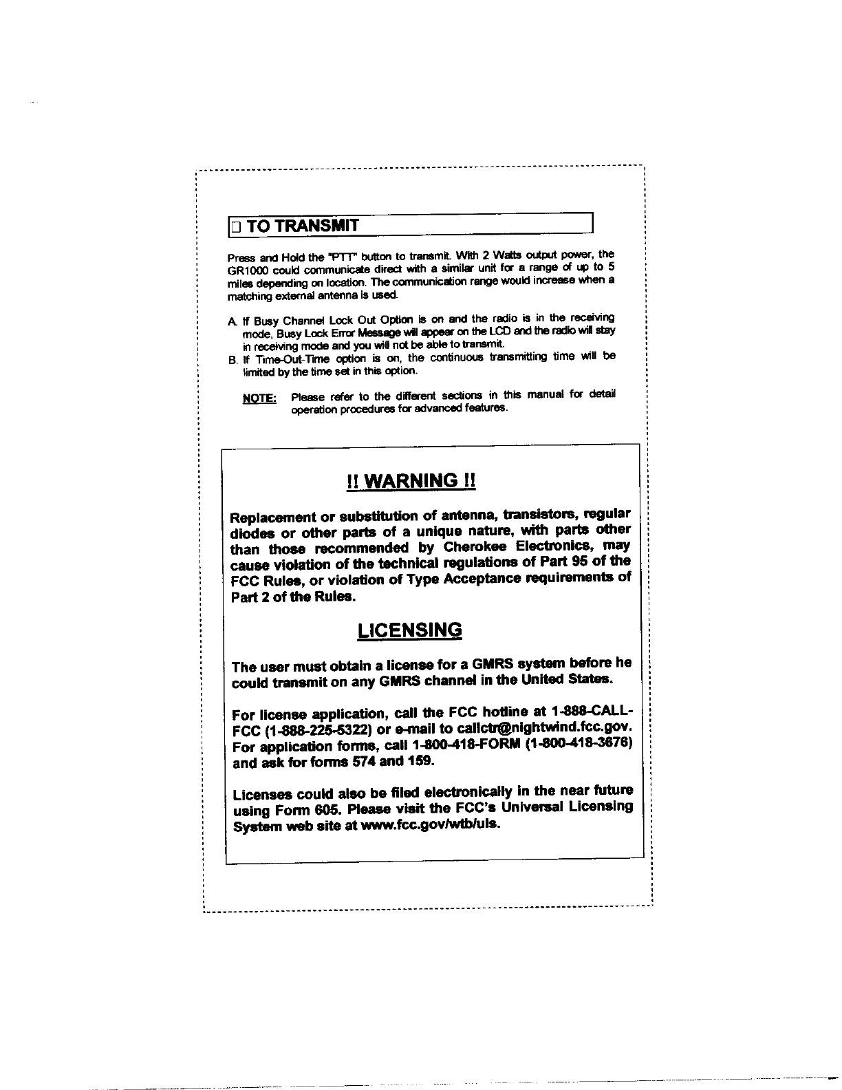 Wireless GR-1000 GMRS transceiver User Manual 16738