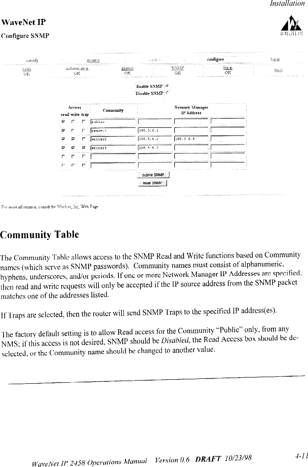 Wireless WNIP2458C wavenet central router User Manual Unknown